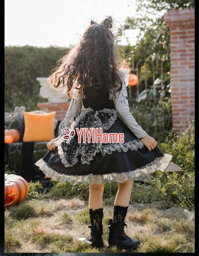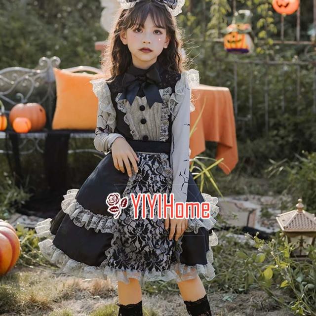 ハロウィン コスプレ 魔女 悪魔 ゴスロリ ハロウィン 仮装 小悪魔 コスチューム キッズ ゾンビ デビル ガール 魔法使い 魔法子ども ハロウィン衣装 ブラック コスプレ衣装 cosplay ゴスロリ 吸血鬼 悪魔 キュートワンピ 家遊び イベント パーティー ロリータ