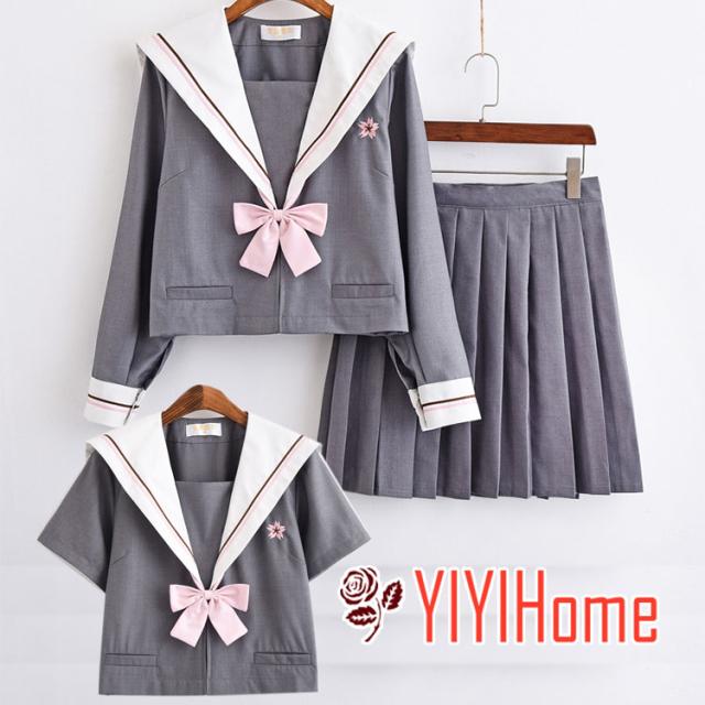 【送料無料】セーラー服 3点セット女子高校 コスプレ 上下セット 長袖セット 半袖セット スカート プリーツスカート 大きいサイズあり ミニスカート スクール 制服 女子高生 高校生 学生服 文化祭 学園祭 コスプレ ハロウィン 仮装 コスチューム 人気JK制服 グレー