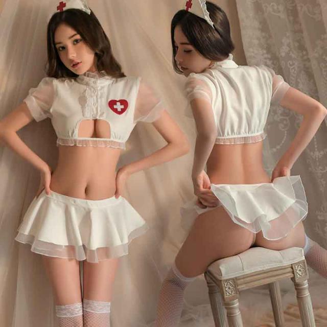 制服 半袖 定番 看護婦 衣装 女性 セクシー ナース服 コスプレ ハロウィン Halloween 白 ピンク 部屋着 超過激 柔らかい 可愛い ルームウェア レディース ベビードール