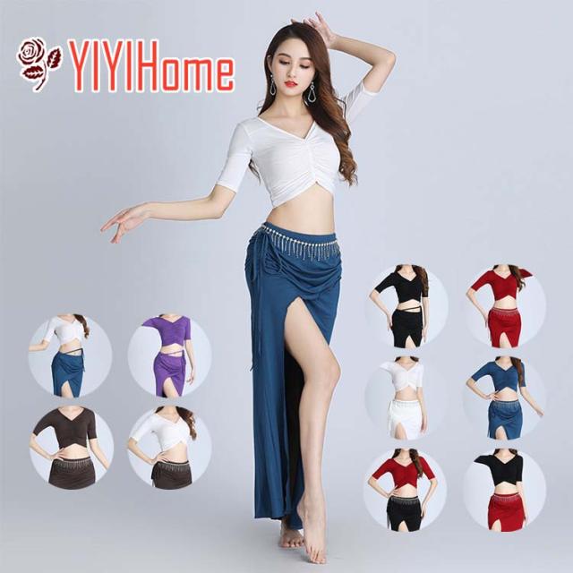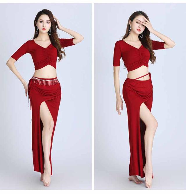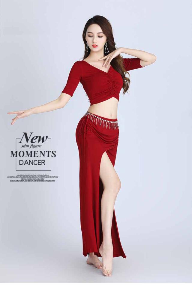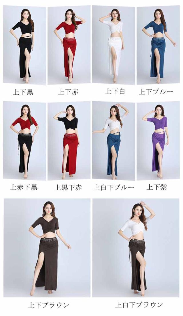ベリーダンス ダンス衣装 セット ハロウィン コスプレ 仮装 パーティー 余興用 レッスン着 トップス スカート 2点セット 社交ダンス 発表会 ラテンダンス 演出 団体 ブラック ワインレッド ホワイト