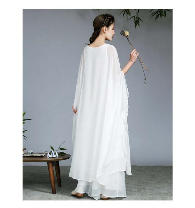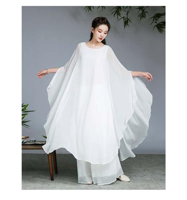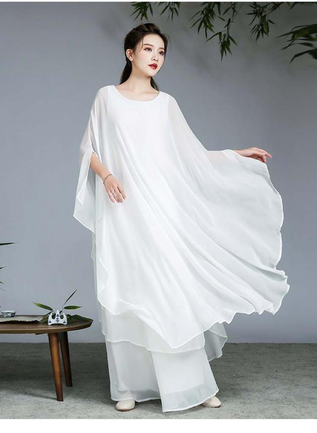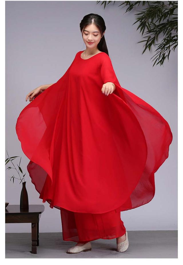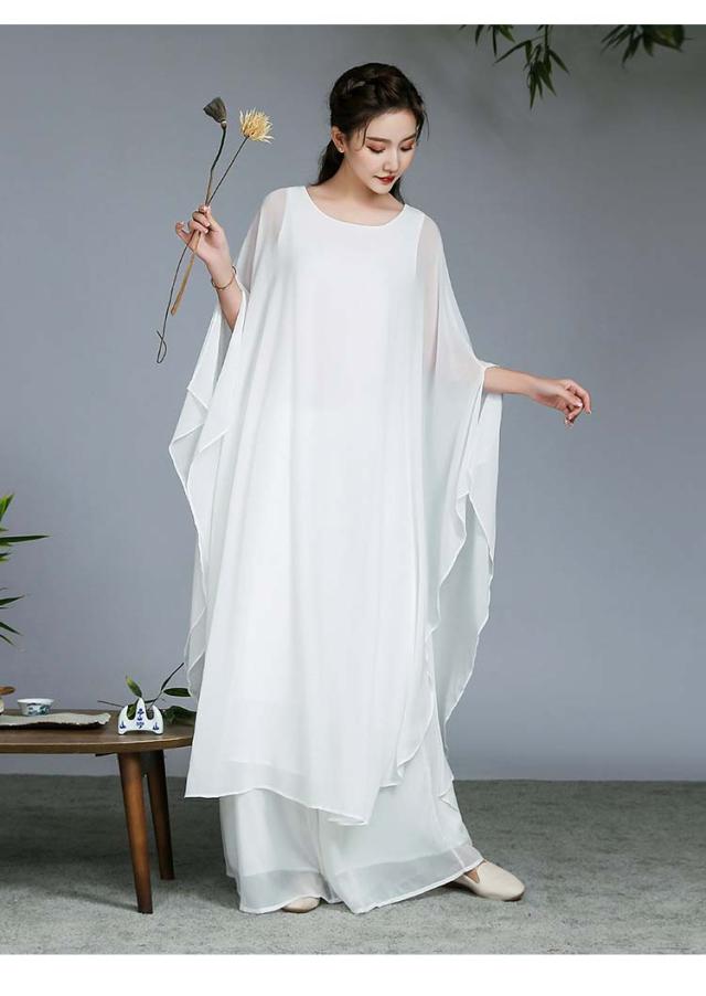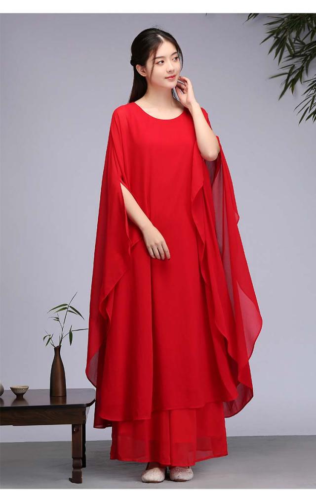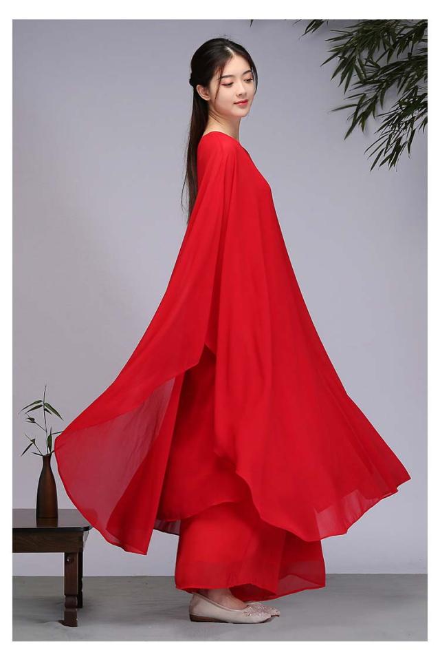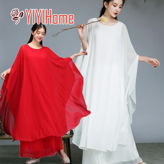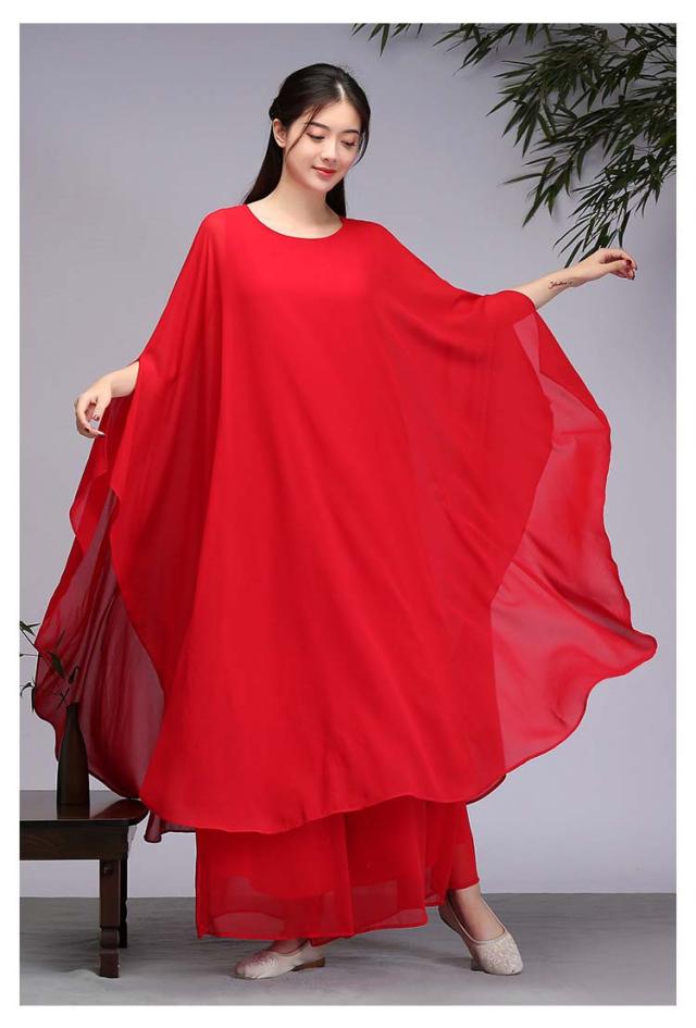 古典ダンス衣装 レディース 大人チャイナ風民族ダンス衣装 シフォンドルマンスリーブワンピース ガウチョパンツ練習着 レッスン着 中華 ファンダンス 演奏会 ドレス 舞台ステージ ダンス衣装 古典 撮影 衣裳 ニ胡 箏 演奏服舞台衣裳 M〜2XL ホワイト レッド 白 赤