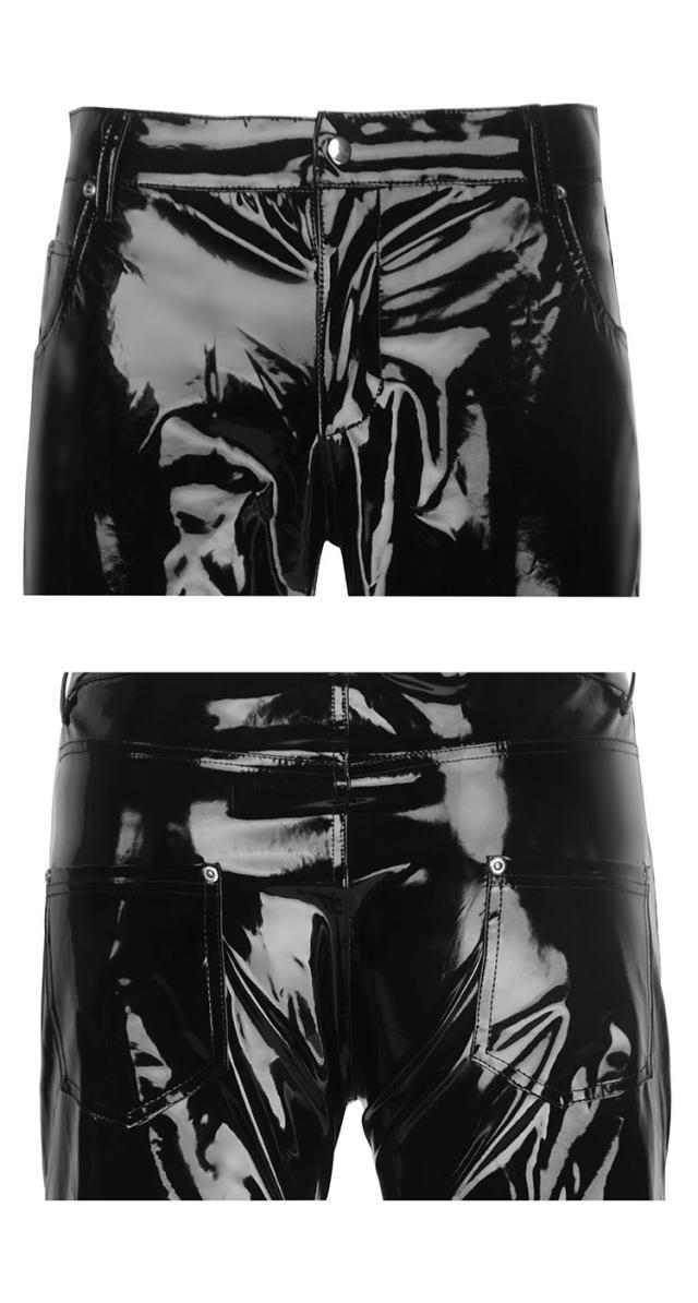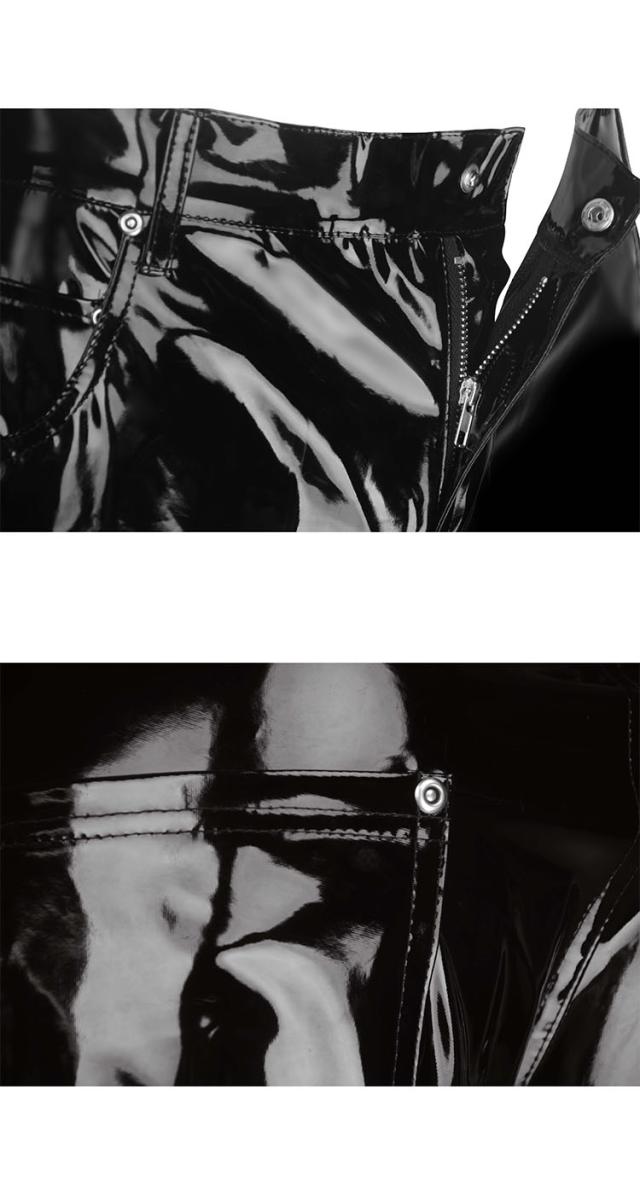 スキニーパンツ 光沢 エナメル ブラック エナメルパンツ メンズ エナメルスキニー ゴシック パンク ロック ファッション スリム ロカビリー ダンス衣装 ステージ衣装 ブラック 黒