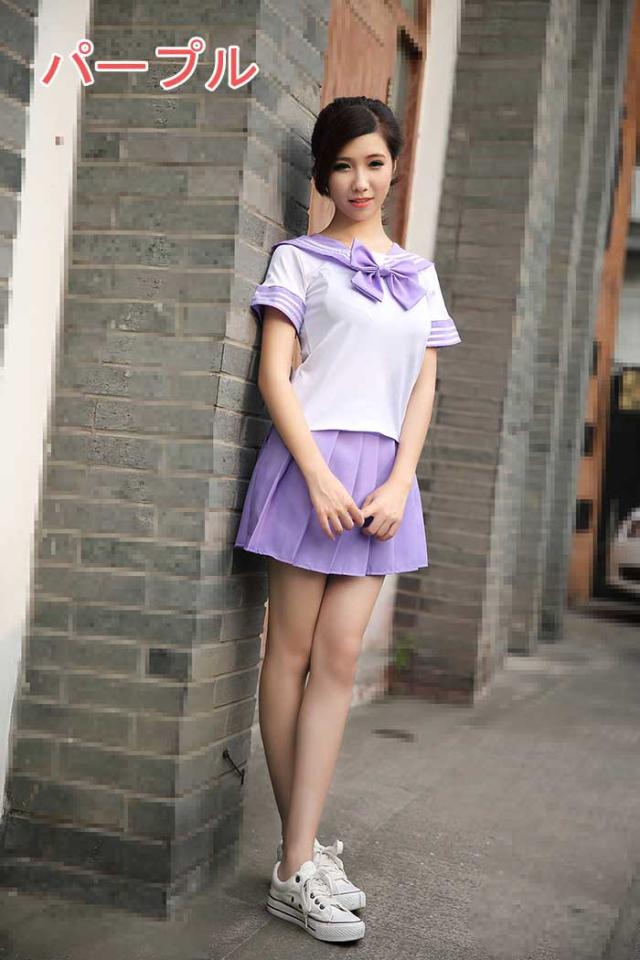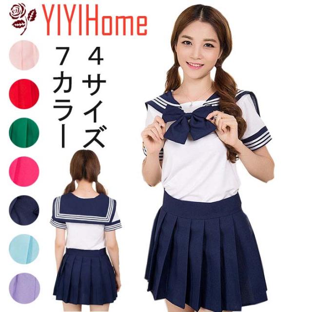 【送料無料】制服 半袖 定番 学生服 衣装 女性 セクシー セーラー服 コスプレ ハロウィン Halloween ピンク レッド グリーン ロースピンク ネイビー 薄ブルー 薄パープル
