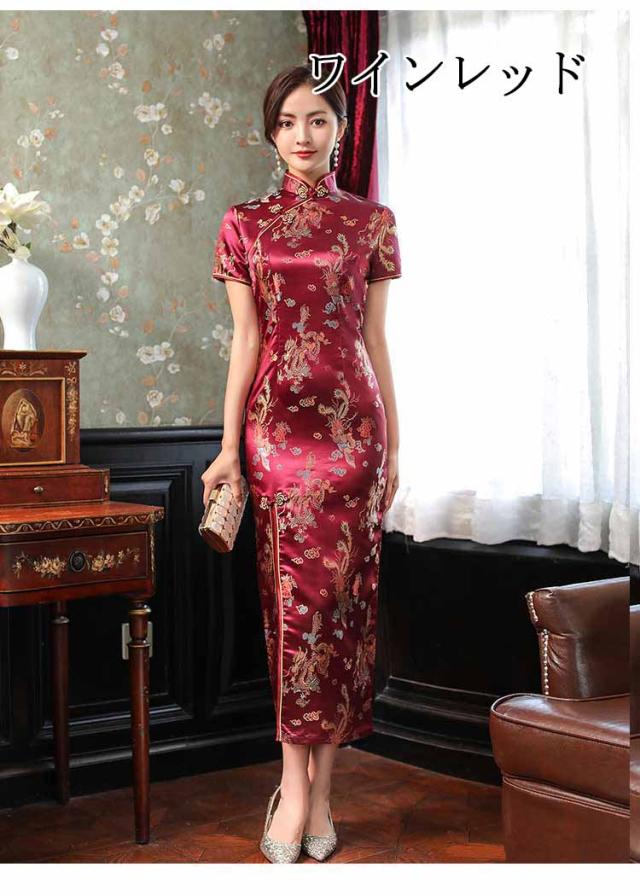 チャイナドレス 中華 龍鳳 梅柄 半袖 ロング チャイナ服 ハロウィン コスプレ 衣装 仮装 チャイナ ドレス 衣装 コスチューム コス チャイナドレス こすぷれ 可愛い ワンピース ワンピ セクシー 男ウケ 大きいサイズ 大人 レディース ハロウィンコスプレ コスプレ衣装