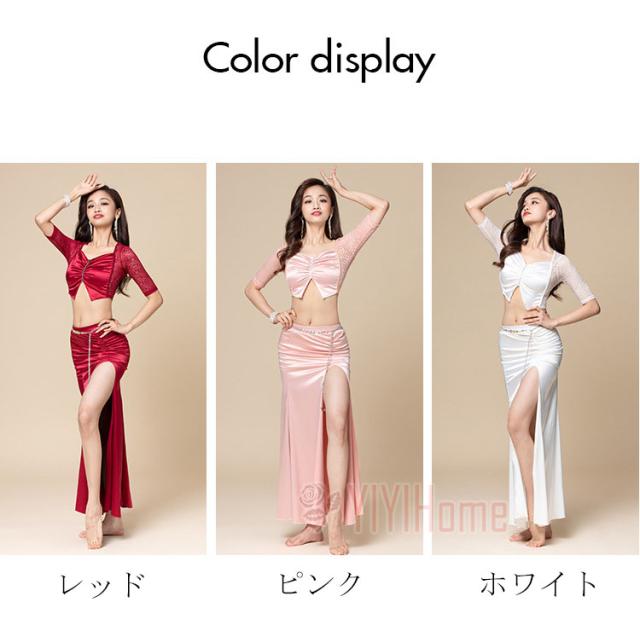 ベリーダンス ダンス衣装 セット ハロウィン コスプレ 仮装 パーティー 余興用 レッスン着 トップス スカート 2点セット 社交ダンス 発表会 ラテンダンス 演出 団体 お揃い レッド ピンク ホワイト