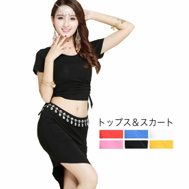 ベリーダンス ダンス衣装 セット コスチューム ハロウィン コスプレ 仮装 パーティー 余興用 社交ダンス レッスン着 スカート ヨガ レッド ネイビー ホワイト ローズピンク イエロー ブラック