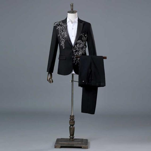 メンズスーツセット S-3XL 派手おしゃれ紳士服 トップス パンツ 2点セット 結婚式二次会フォマールスーツ ステージ衣装 メンズ ジャケット 男性 忘年会 新年会 発表会 ハロウィン コスプレ ダンス衣装 キラキラ ジャケット ステージ衣装 舞台衣装 カラオケ衣装