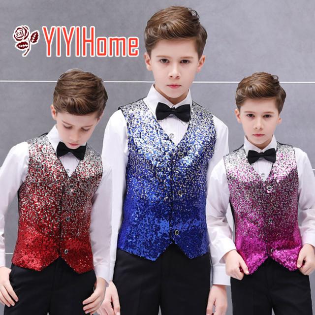 キッズ ベスト 子供 ベスト スパンコールベスト 舞台ステージ衣装 子供ダンス衣装 男の子 120cm-160cm キッズ舞台 ステージ 演出 ベスト カラー配色スパンコールダンスウエア イベント発表会ダンス服 コスプレジャズベスト キラキラ