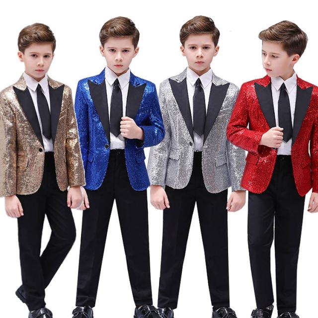 スパンコール ステージ衣装 キッズ ジャケット 子供 男の子 忘年会 新年会 発表会 ハロウィン コスプレ ダンス衣装 キラキラ ジャケット ステージ衣装 舞台衣装 カラオケ衣装 コスプレジャズジャケット ブラック レッド シルバー ブルー ゴールド ピンク