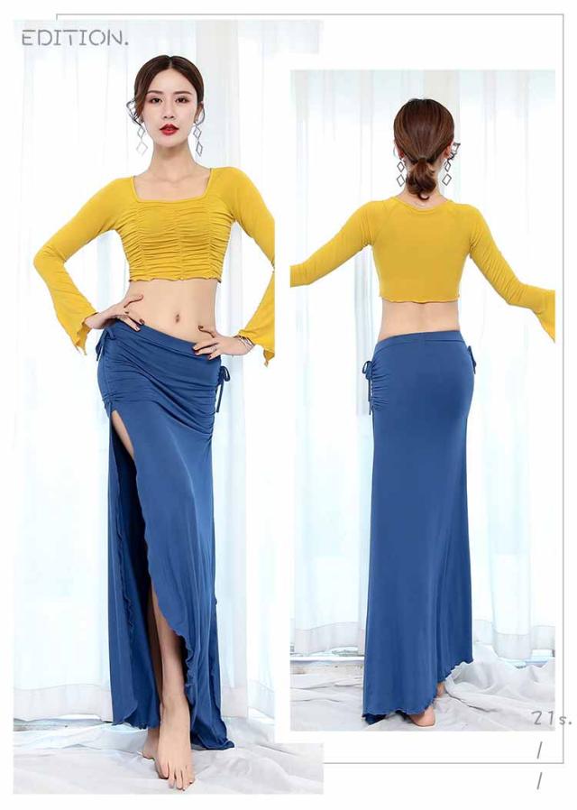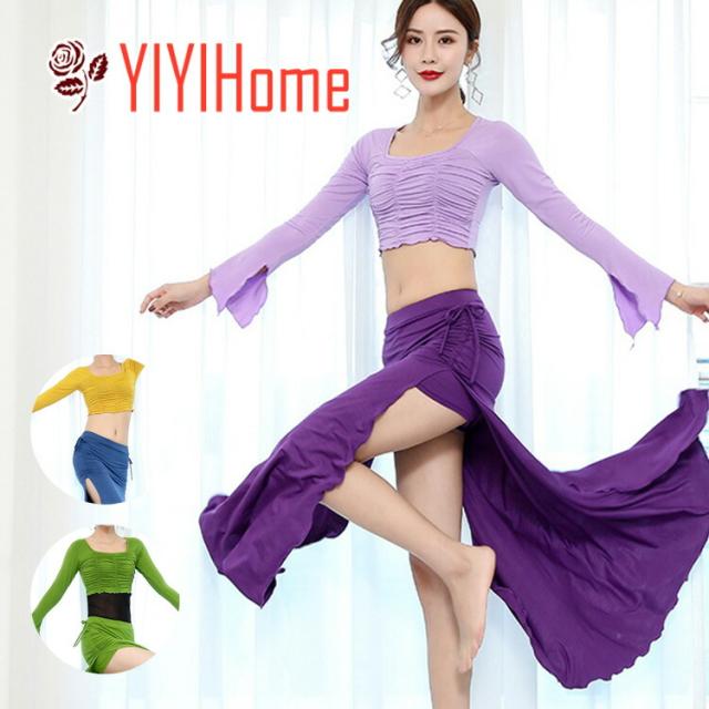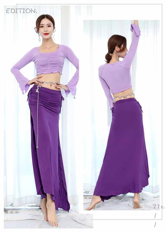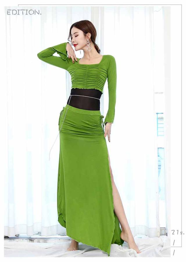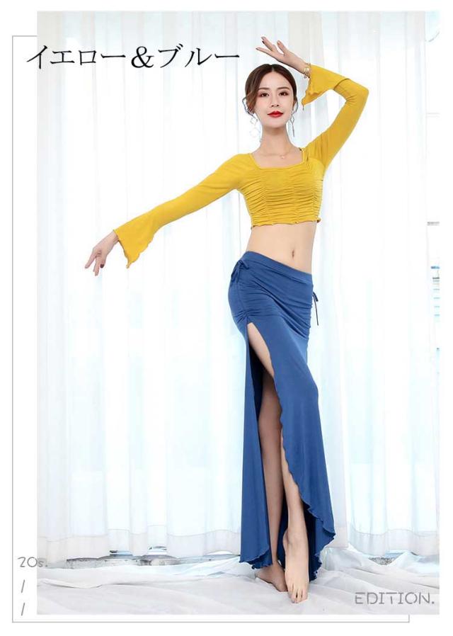 ベリーダンス ダンス衣装 セット ハロウィン コスプレ 仮装 パーティー 余興用 レッスン着 トップス スカート 2点セット 社交ダンス 発表会 ラテンダンス 演出 グリーン イエロー パープル