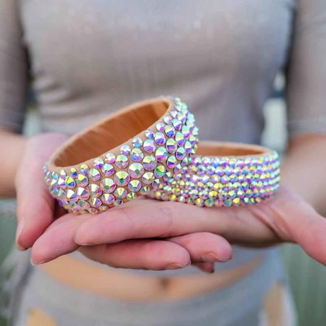 手首にはめるだけ ※伸縮性なし 内側直径:約6.8cm 外側直径:約7.8cm (飾り含む) 幅:約2.5cm |