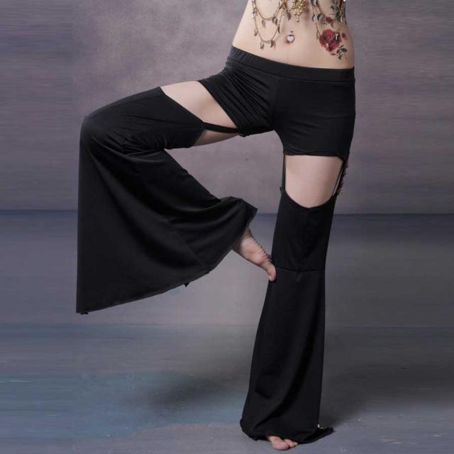 ダンスパンツ 美脚パンツ サイドカット ローライズ フィットネス 社交ダン ベリーダンス レッスンパンツ ズボン ダンス衣装 pants アラビアン レディース ストレッチ素材 股上浅め/ウエストゴム/裏地なし ブラック フリー 黒