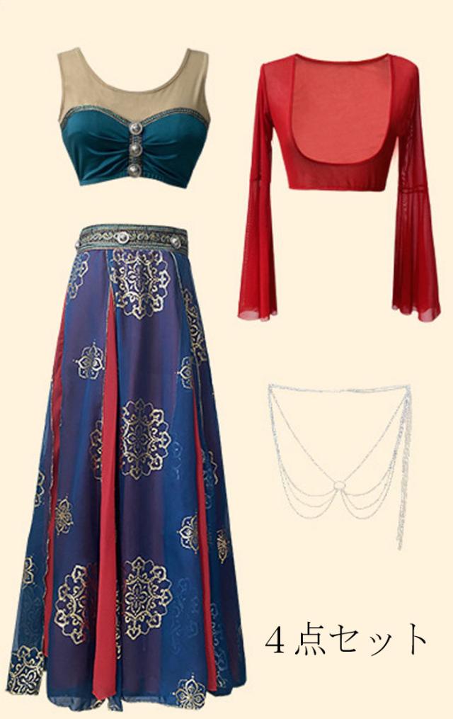 Sサイズ トップス丈約29cm バスト約72cm 袖丈約56cm スカート丈約90cm 適応体重40-45kg Mサイズ トップス丈約30cm バスト約76cm 袖丈約56cm スカート丈約90cm 適応体重45-50kg Lサイズ トップス丈約31cm バスト約80cm 袖丈約56cm スカート丈約90cm 適応体重50-60kg ★★セット内容★★ 4点セット:ブラ+トップス+スカート+ウエストチェーン(8680円) 5点セット:ブラ+トップス+スカート+ウエストチェーン+ショール(9980円へ変更) |