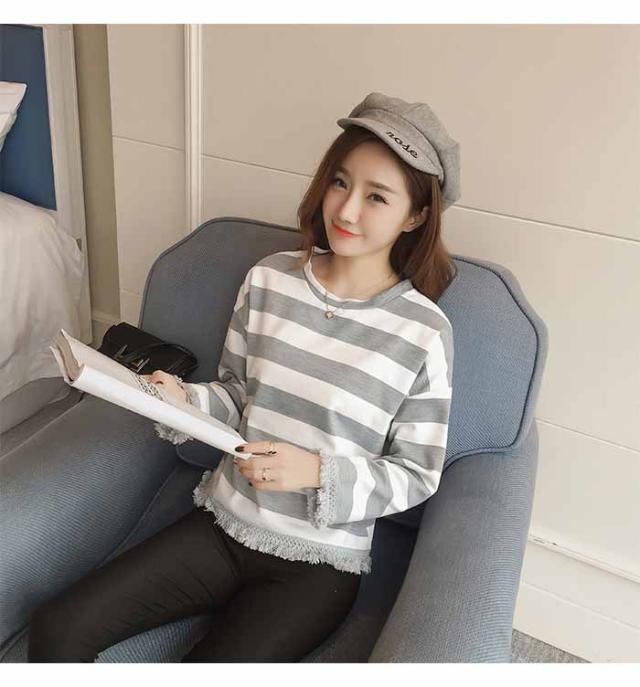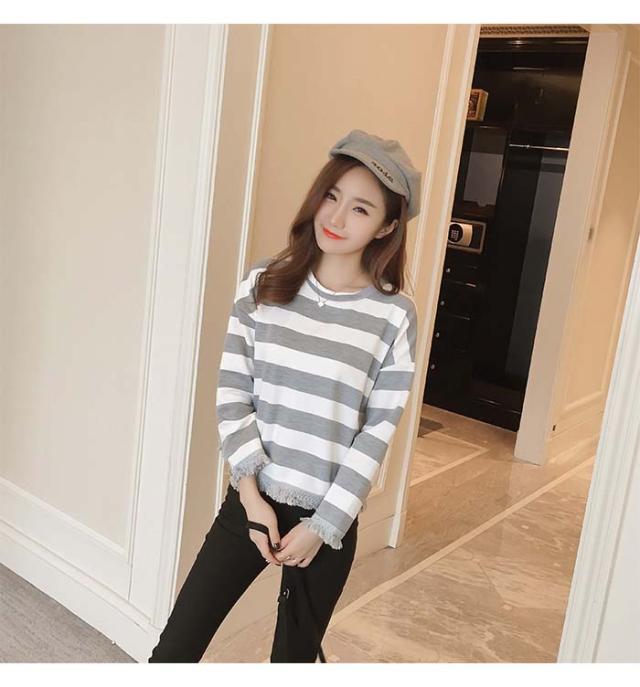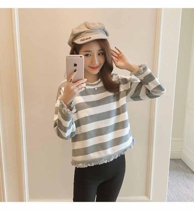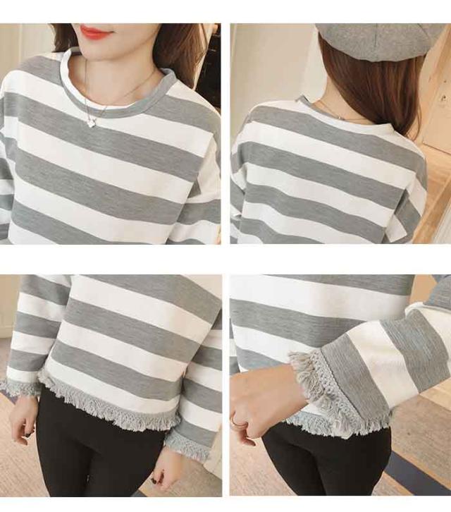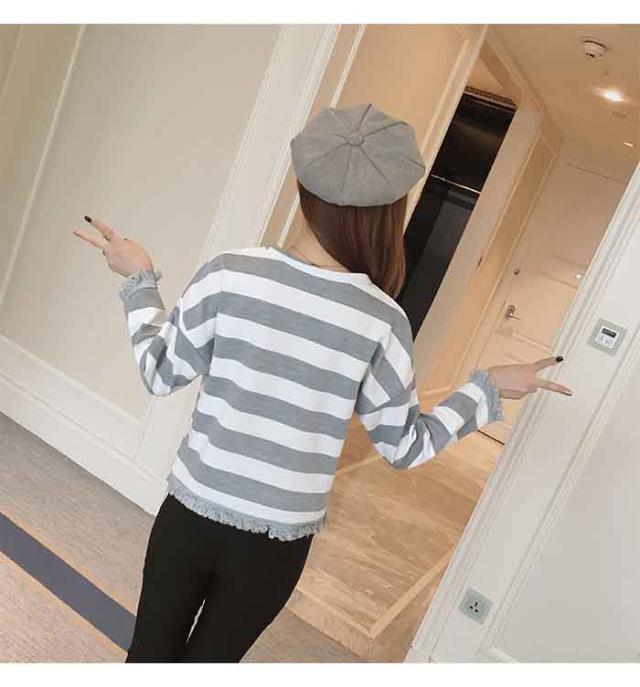 DM便対応送料無料 ボーダー 体型カバー 韓国風 S M L XL カジュアル タッセル 春 秋 冬 20代30代40代 レディース トップス 長袖
