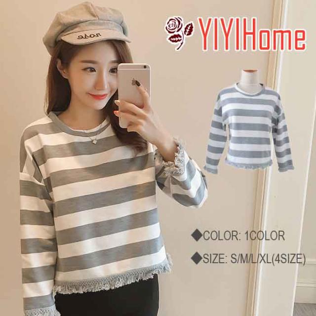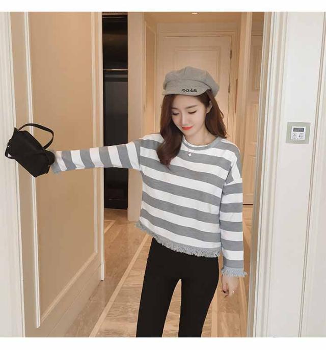 DM便対応前払いのみ送料無料 ボーダー 体型カバー 韓国風 S M L XL カジュアル タッセル 春 秋 冬 20代30代40代 レディース トップス 長袖