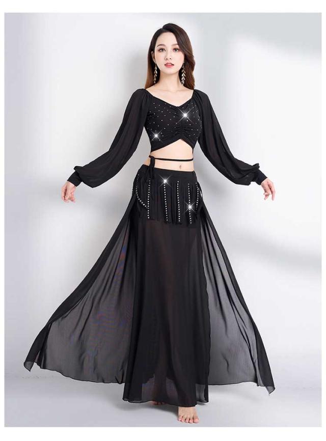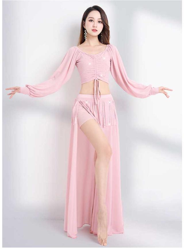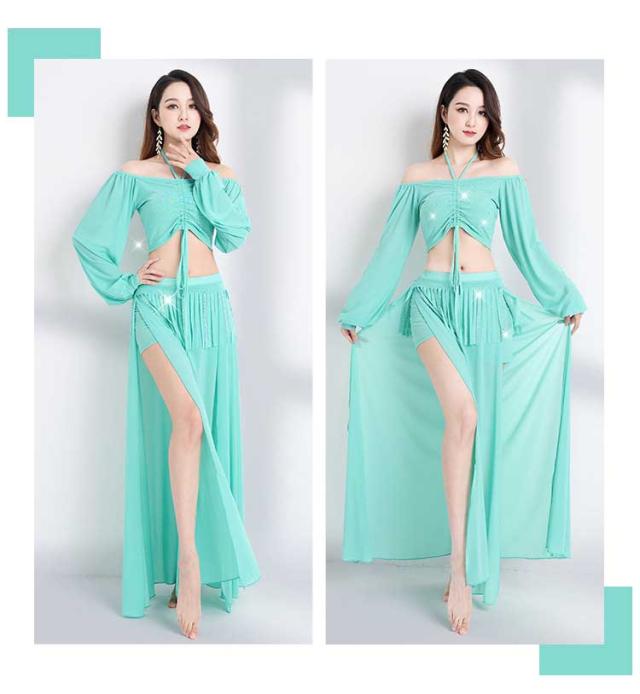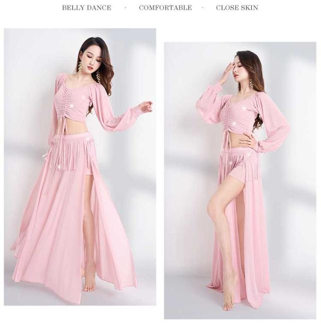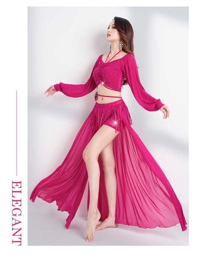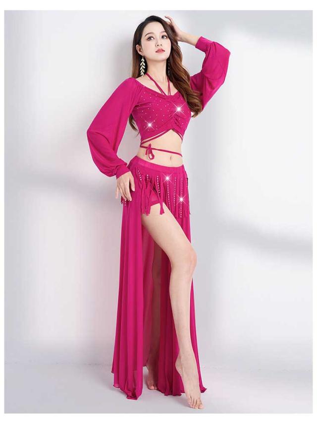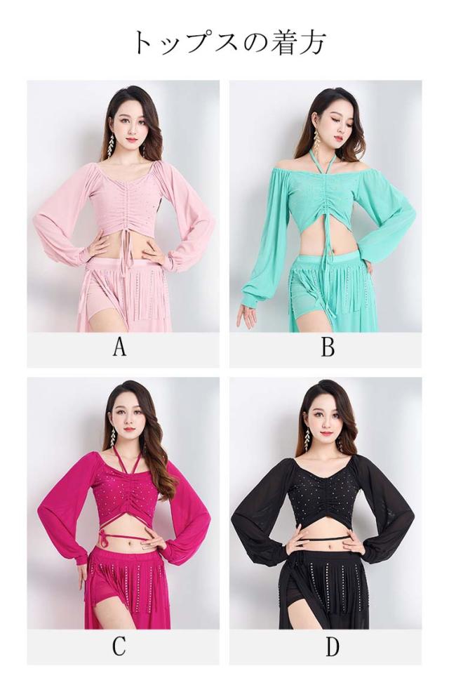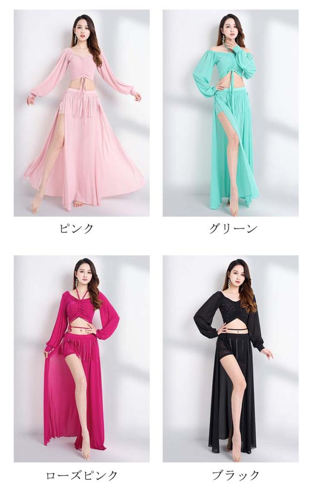 ベリーダンス ダンス衣装 セット ハロウィン コスプレ 仮装 パーティー 余興用 レッスン着 トップス スカート 2点セット 社交ダンス 発表会 ラテンダンス 演出 安全パンツ付き 団体 ピンク ローズピンク グリーン ブラック ストレッチ性よい