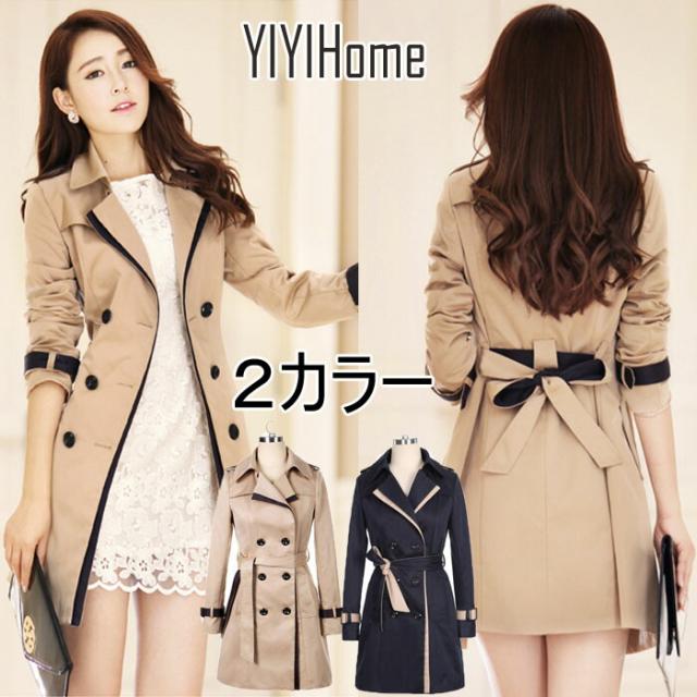 YIYIHomeOLレディーストレンチコートアウターメディアスカーフ付きベルト付き秋冬細身韓国風結婚式学院二次会送別会SMLXLサイズスプリングベージュネービー
