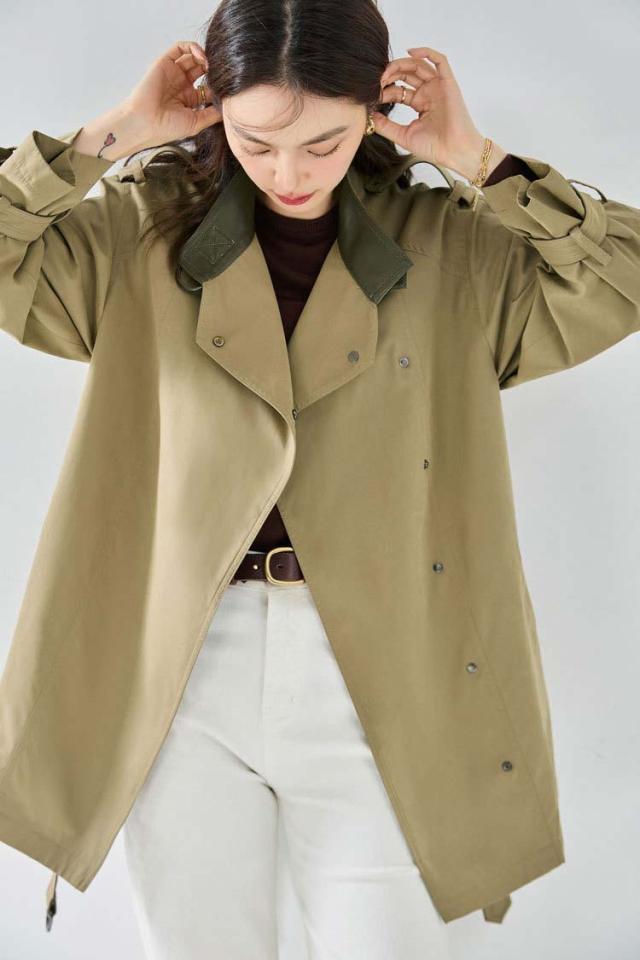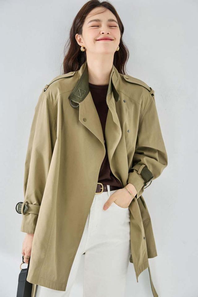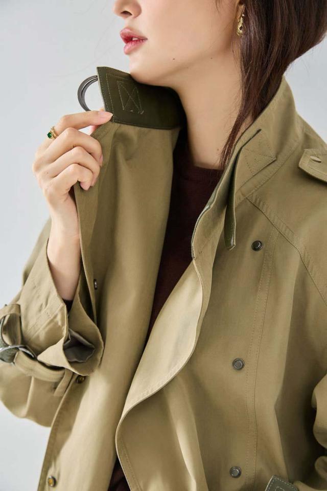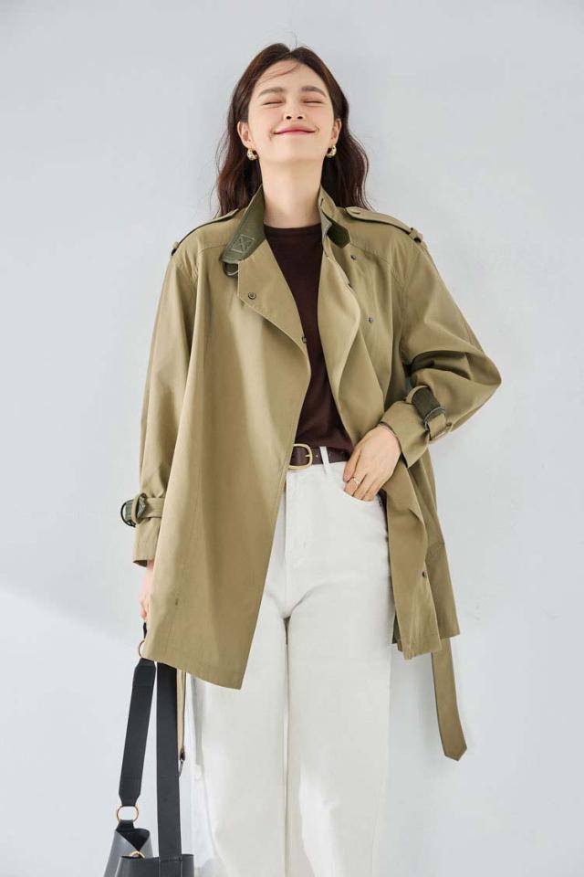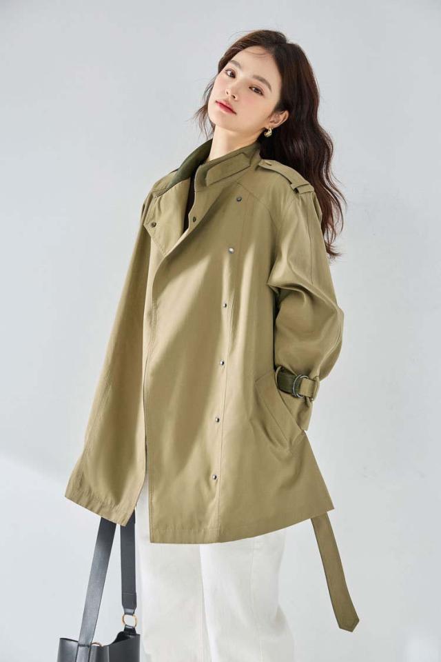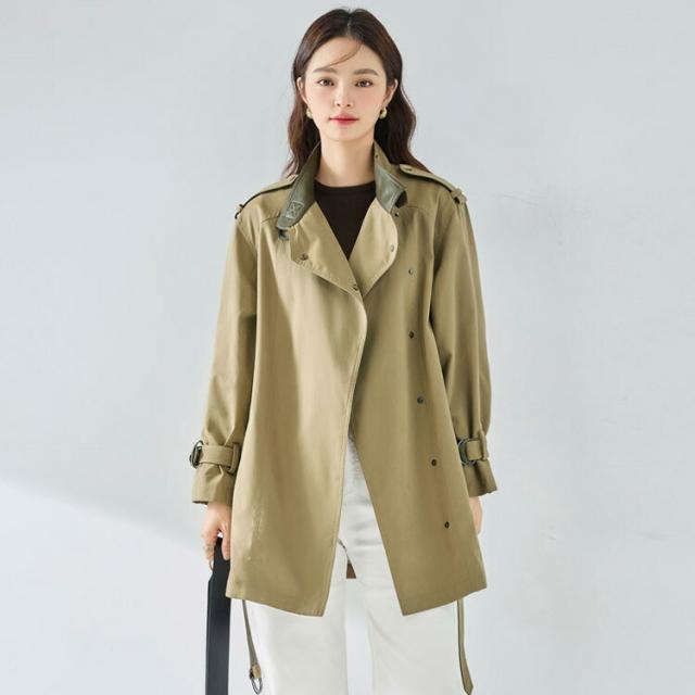 新作 コート 秋冬 ジャケット レディース トレンチコート アウター ベルト付き 秋冬 細身 通勤 OL 韓国風 結婚式 学院 二次会 送別会 S M Lサイズ スプリングカーキ ボタン付き ミディアム丈