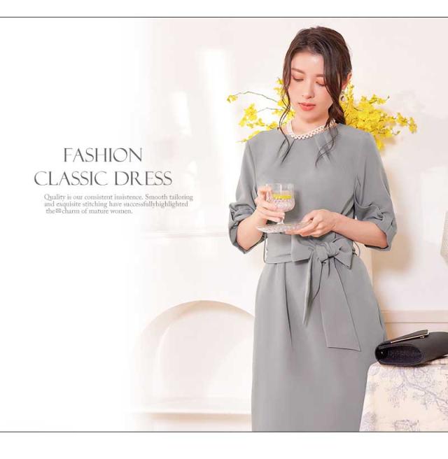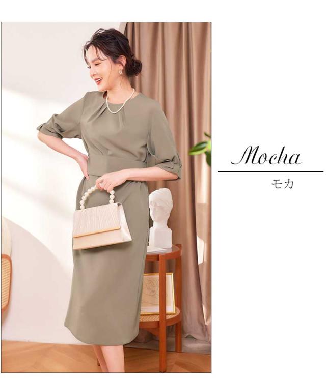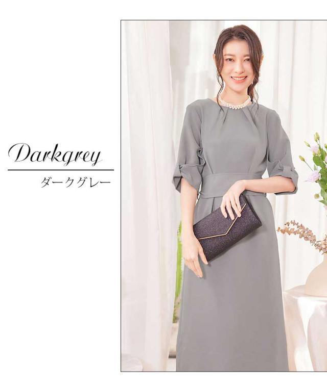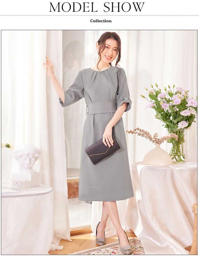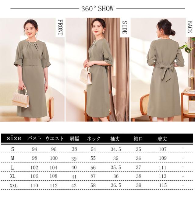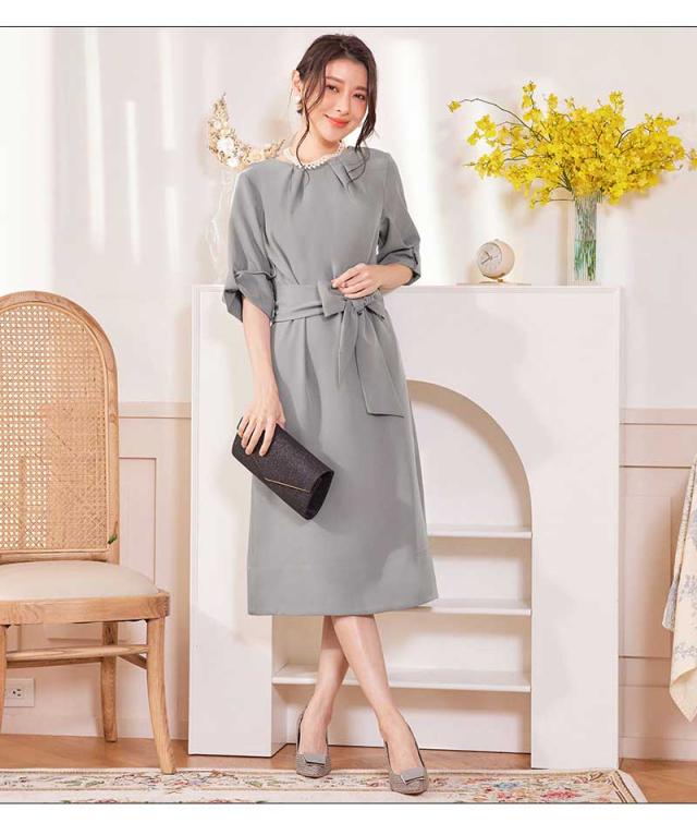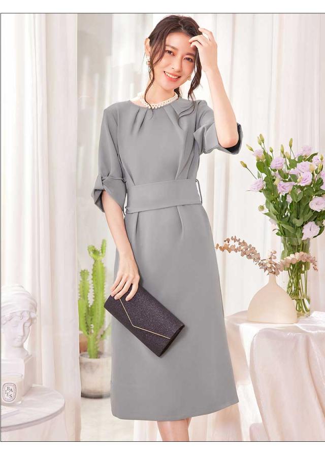 シーンを選ばずに着られるコクーンワンピースドレス パーティードレス フォーマルドレス ドレス ワンピース コクーン レディース 五分袖 ミモレ丈 裏地なし ベルト付き 体型カバー リボン卒業式 入学式 入園式 卒園式 フォーマル