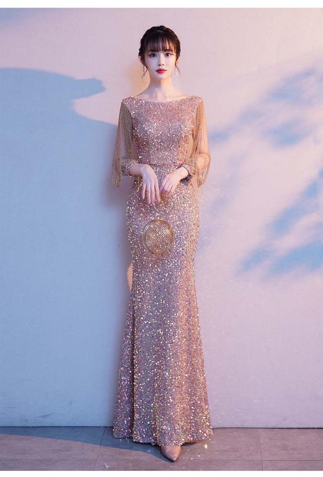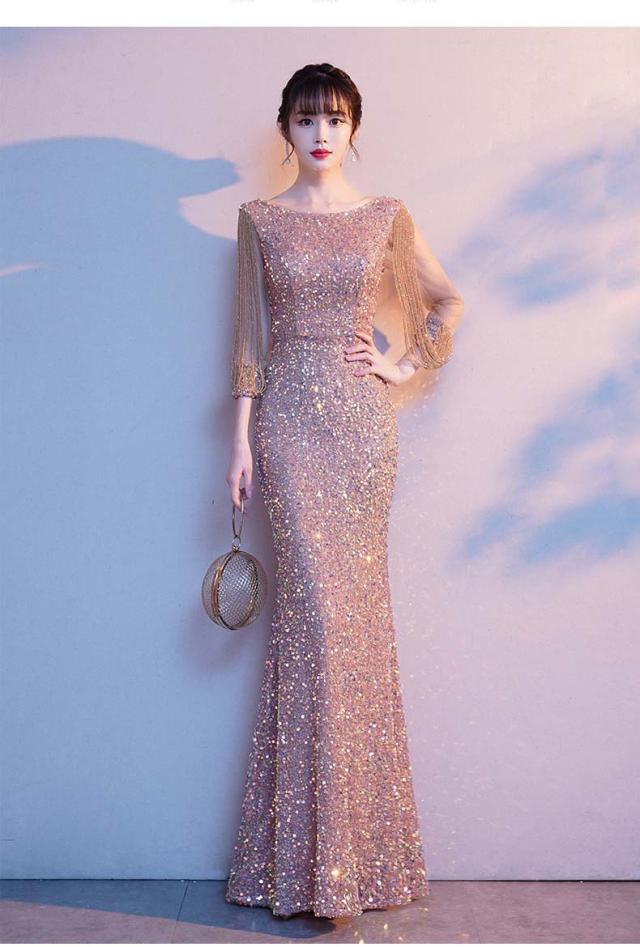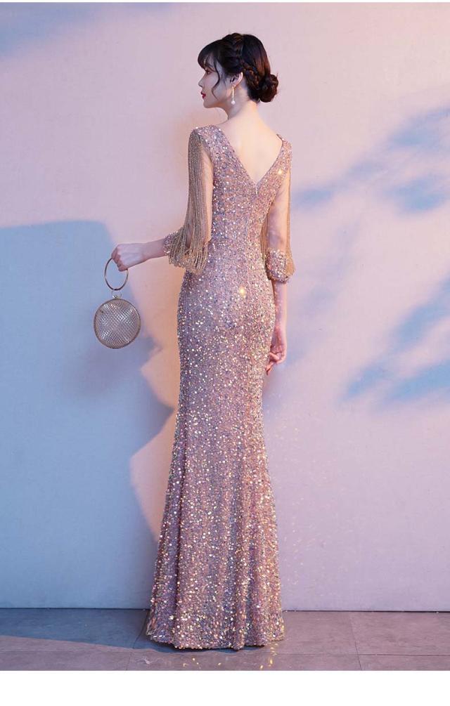 演奏会用ドレス ロングドレス パーティードレス ロング 社交ダンス 衣装 ドレス ダンス衣装 ステージ衣装 発表会 ピアノ発表会 結婚式 ドレス 二次会 2次会 お呼ばれ ゲスト レディース 大人 カラオケ衣装 スパンコール 七分袖