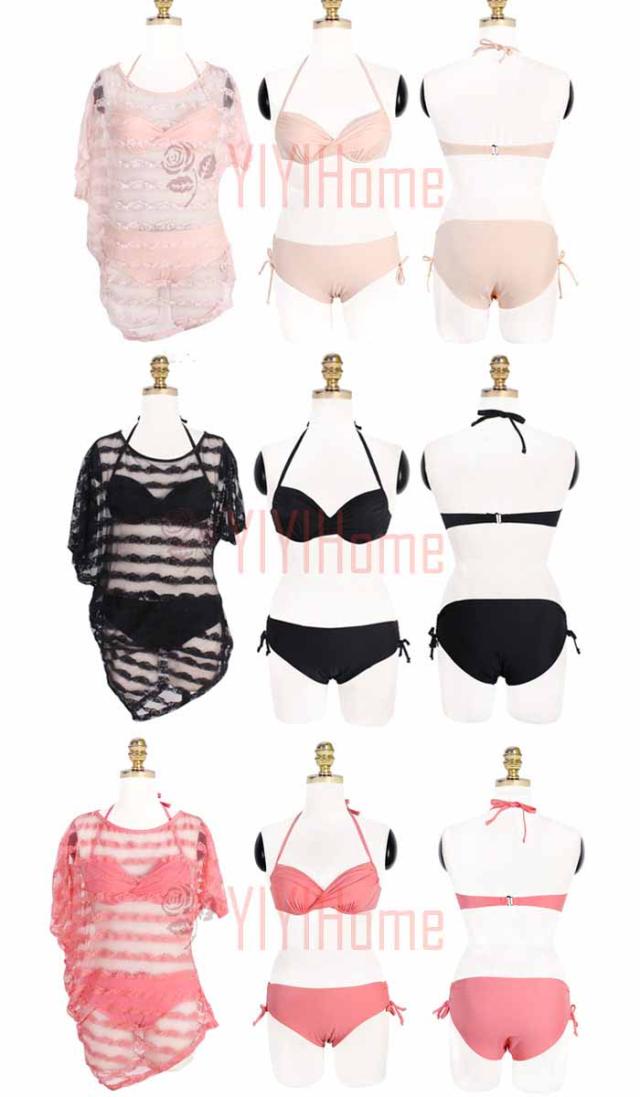 新作 水着 レディース ビキニ 3点セット ワンピース付き ホルターネック 女性用 大人 セクシー 可愛い 体型カバー 女の子 ママ プール ビーチ 夏 薄ピンク ダークピンク 黒