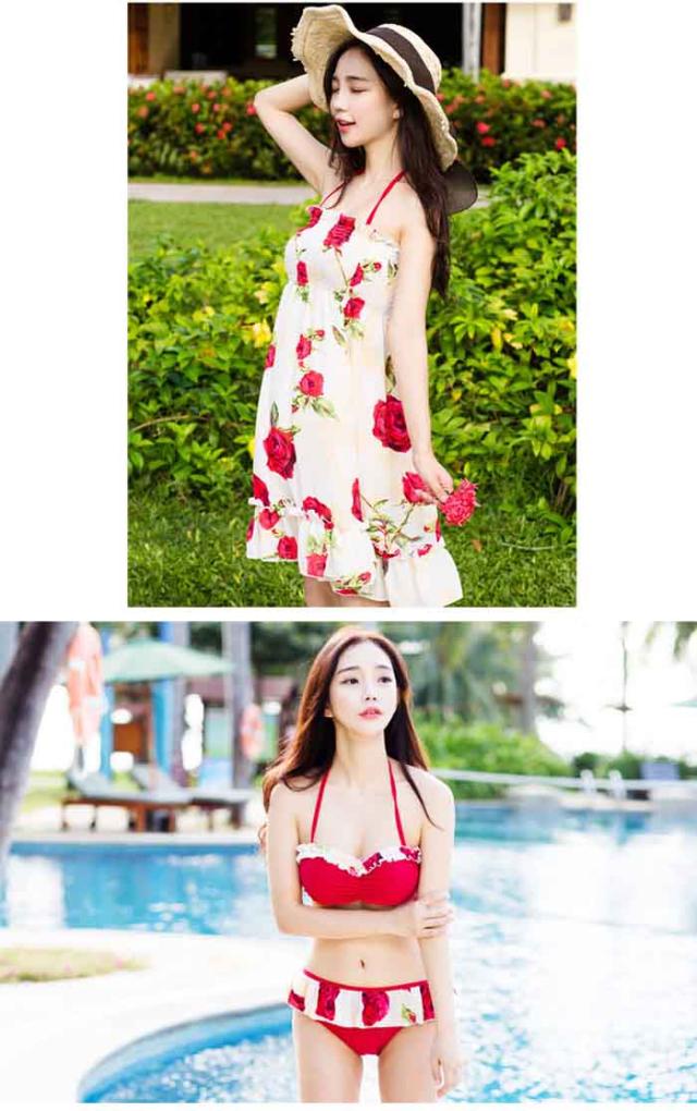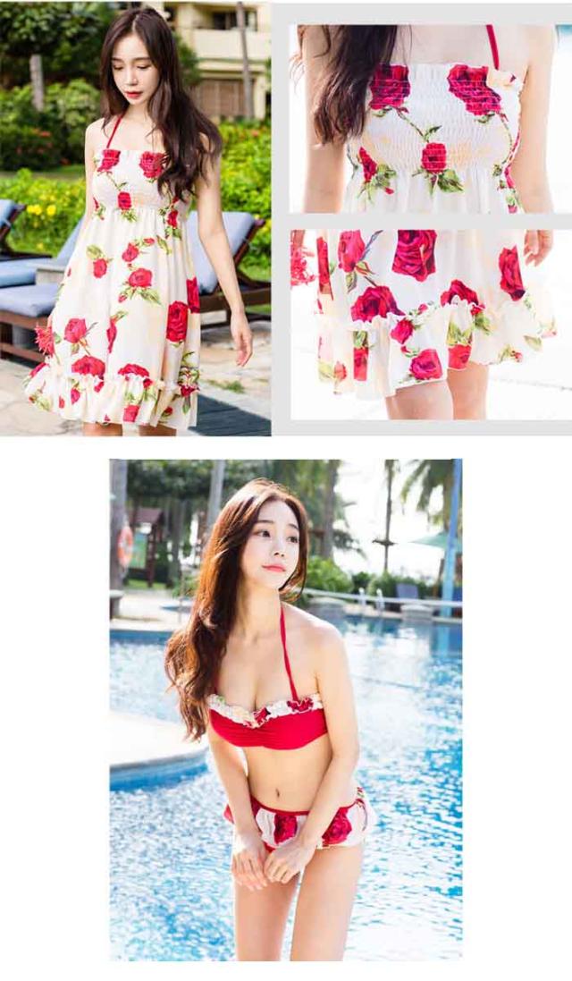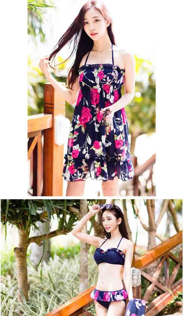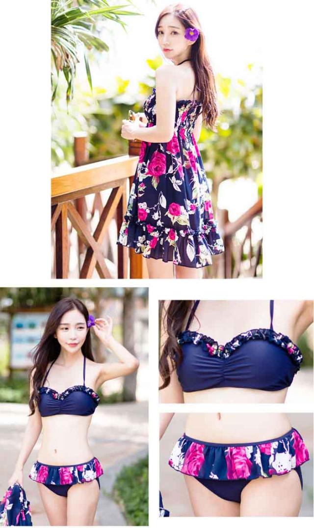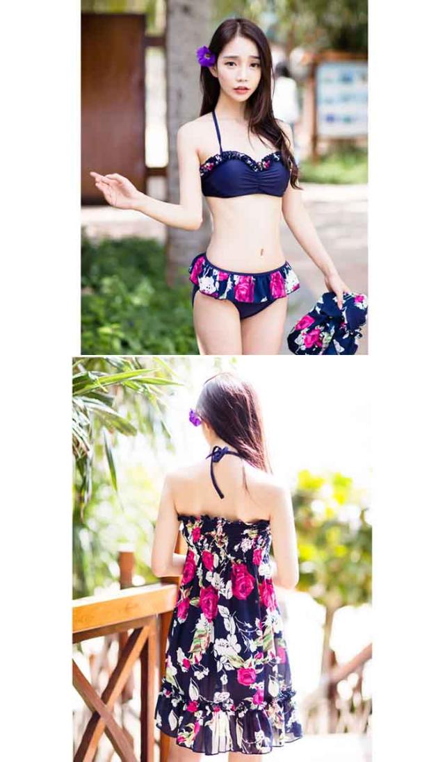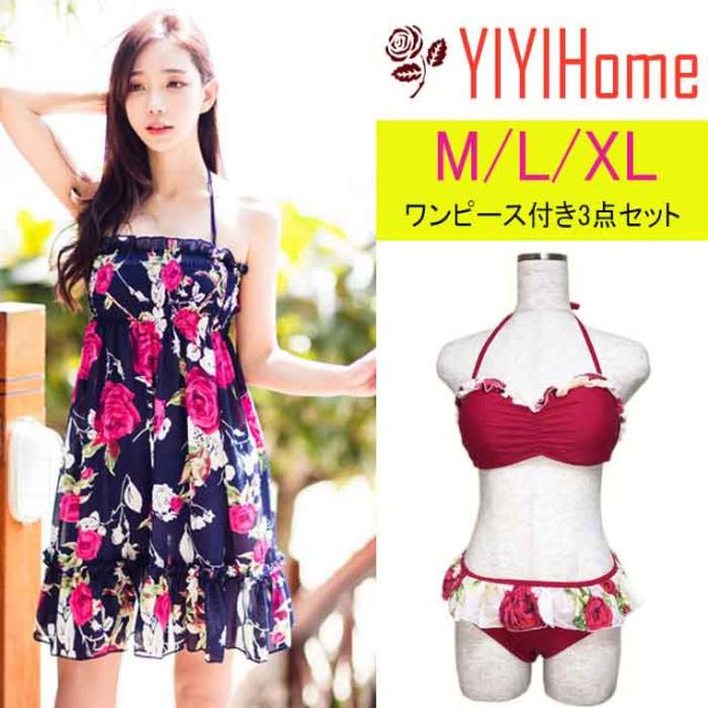 新作 水着 レディース ビキニ 3点セット 女性用 大人 セクシー 可愛い 体型カバー 女の子 ママ ワンピース付き