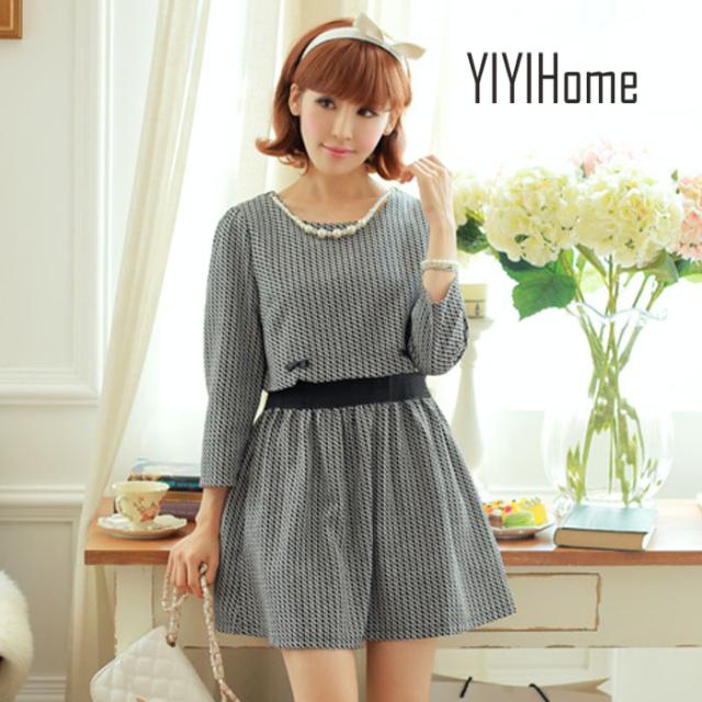 【送料無料】セレブ 長袖 フレア ショート 膝丈 細身 デート 韓国風 お嬢様 結婚式 発表会 同窓会 大人上品 二次会 謝恩会 送別会 SML 20代30代40代 レディース 春 ワンピース 秋冬 ドレス