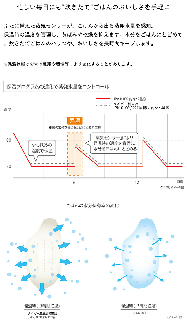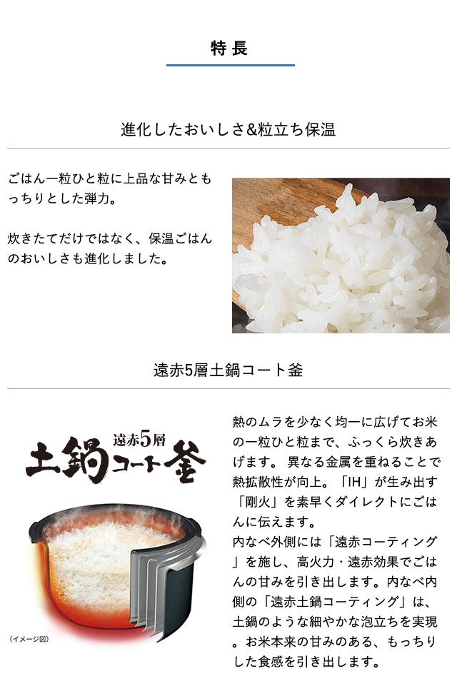 炊きたてだけではなく、保温ごはんのおいしさも進化しました。