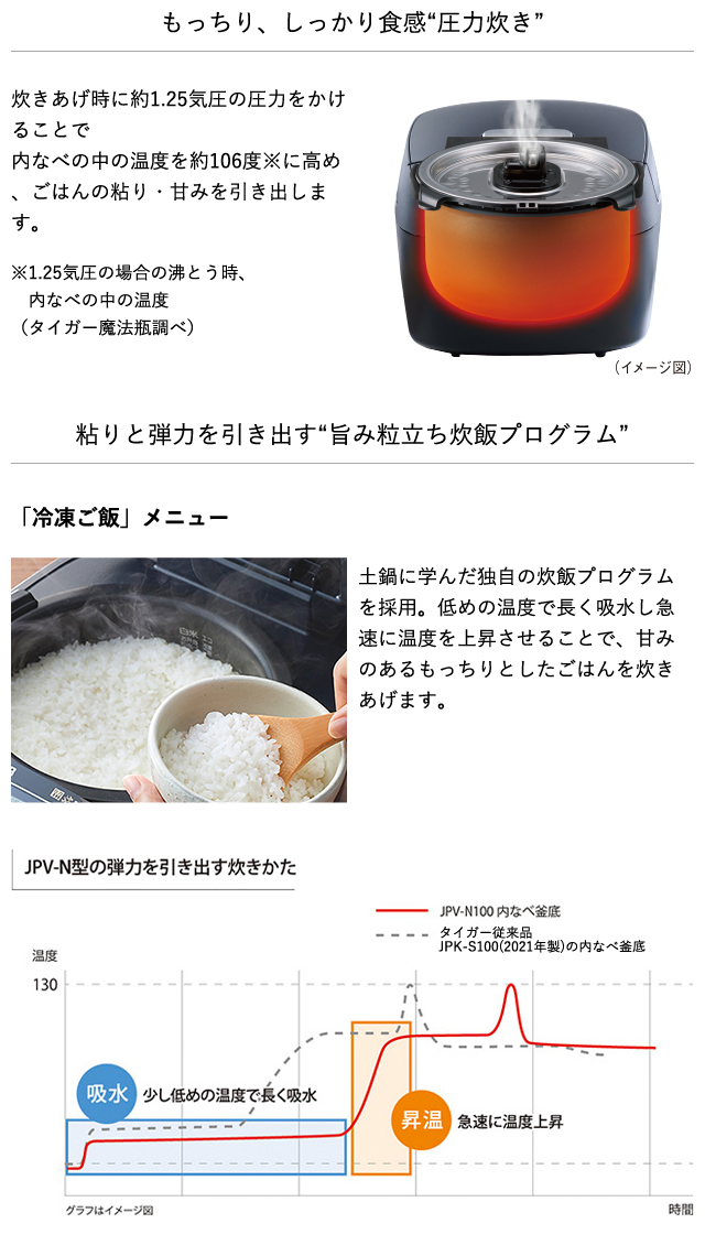 炊飯器 5.5合炊き 圧力IH タイガー 日本製 冷凍ご飯 調理 日本製 JPV-N100K
