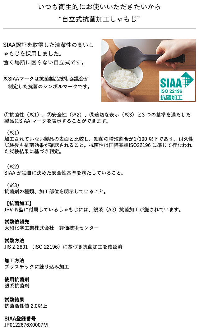 JPV-T型に付属しているしゃもじには、銀系(Ag)抗菌加工が施されています。