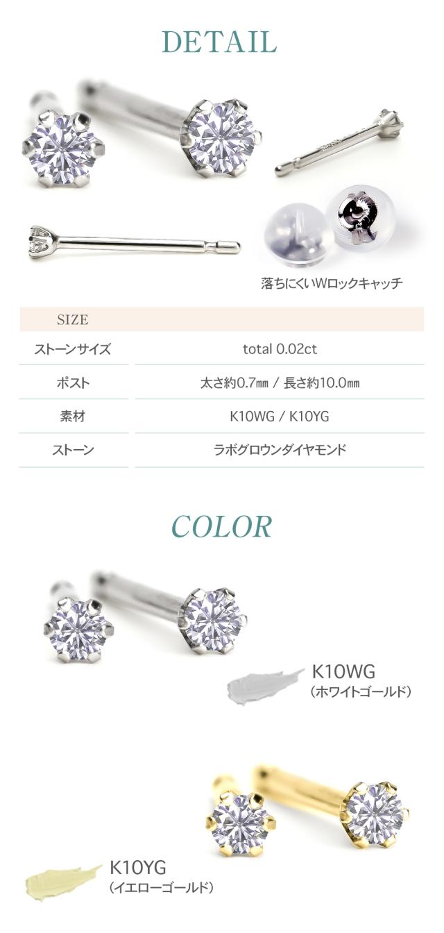 ダイヤモンド ピアス 0.02カラット 一粒 K10 キャッチ 落ちない 金属アレルギー ダイヤモンドピアス ダイヤピアス 一粒ダイヤ ホワイト イエロー ゴールド ラボグロウン レディース ジュエリー アクセサリー シンプル 記念日 誕生日 クリスマス プレゼント 女性 ギフト