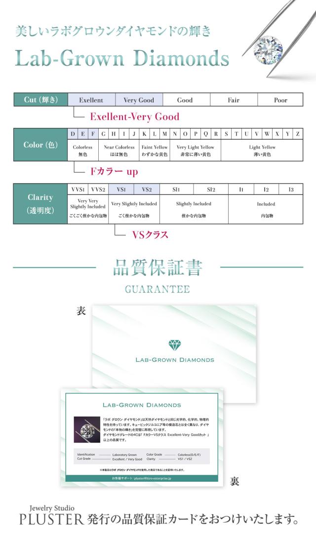 | ストーン | ダイヤモンド ラボ・グロウン・ ダイヤモンドは最新テクノロジーが生み出した合成ダイヤモンドです。 |