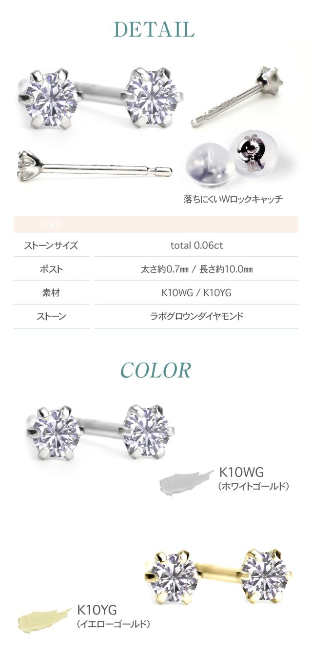 ダイヤモンド ピアス 0.06カラット 一粒 K10 キャッチ 落ちない 金属アレルギー ダイヤモンドピアス ダイヤピアス 一粒ダイヤ ホワイト イエロー ゴールド ラボグロウン レディース ジュエリー アクセサリー シンプル 記念日 誕生日 クリスマス プレゼント 女性 ギフト