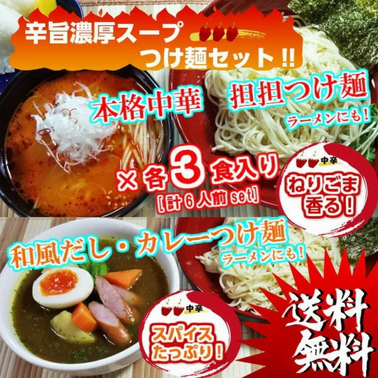 旨辛濃厚スープ つけ麺 セット 2種6人前 ねり胡麻 担々麺スープ & 濃厚スパイス カレー味スープ 九州細麺 お取り寄せ 通販 グルメ