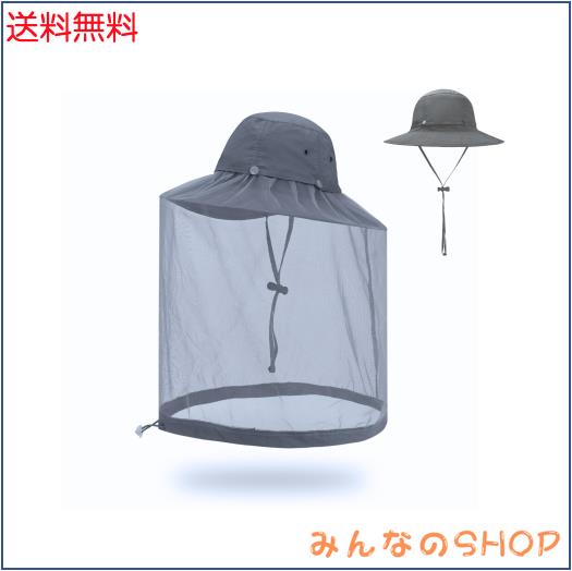 [Soxbang] 虫除け ネット付き帽子 つば広 あご紐 防虫ネット 紫外線対策 UVカット 日除け帽子 吸汗速乾 軽薄防虫 帽子 園芸 農作業 アウ
