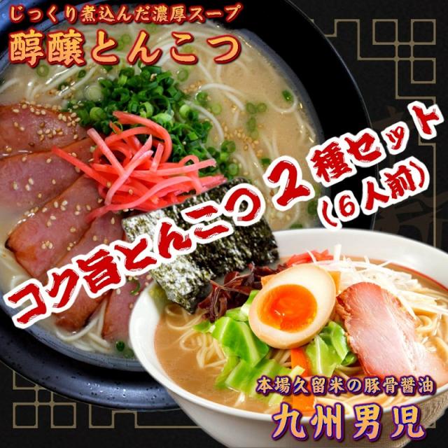 ご当地 とんこつラーメン お取り寄せ 屋台風 濃厚豚骨 醇醸スープ & 久留米豚骨醤油 九州男児 2種6人前セット お取り寄せ 通販 グルメ