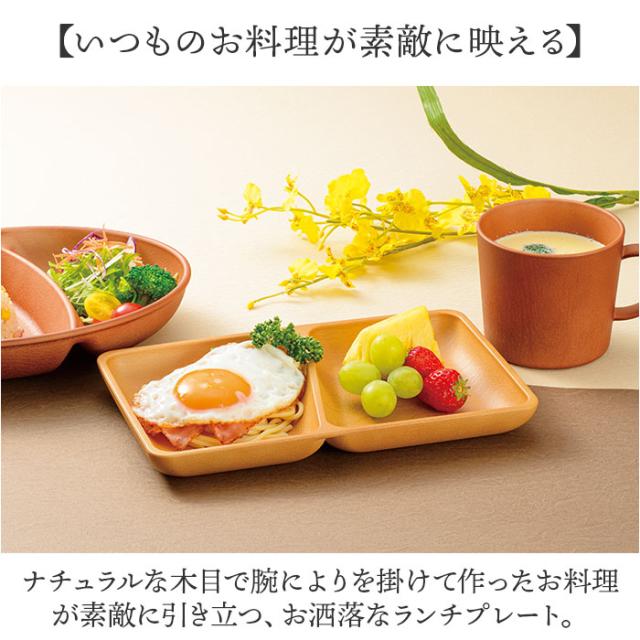プレート 皿 四角 仕切り 通販 ランチプレート 仕切り皿 しきり皿 2つ お皿 ランチ皿 ワンプレート 2つ仕切り 仕切りプレート皿 角型 食器 木目調 電子レンジ対応 食洗機対応 ナチュラル おしゃれ オシャレ 割れにくい テーブルウェア ギフト