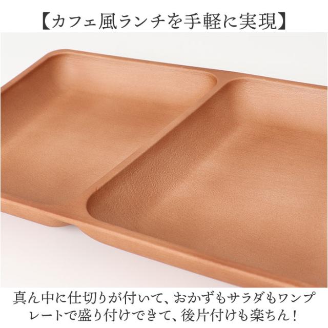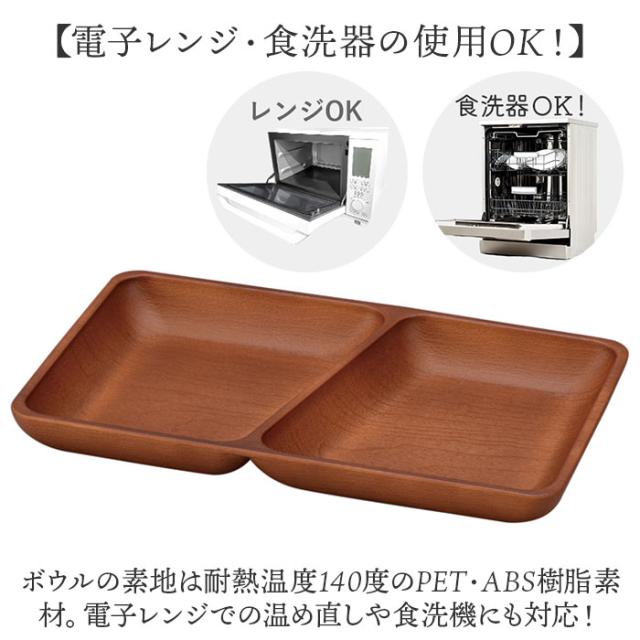 プレート 皿 四角 仕切り 通販 ランチプレート 仕切り皿 しきり皿 2つ お皿 ランチ皿 ワンプレート 2つ仕切り 仕切りプレート皿 角型 食器 木目調 電子レンジ対応 食洗機対応