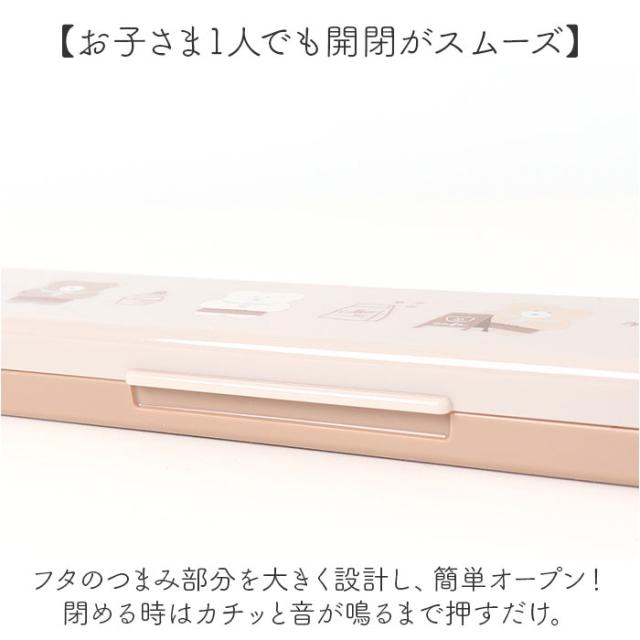 | 商品説明 | 【毎日のランチのお供にぴったり】 ・持ち歩きやすくデイリーに使える!抗菌加工を施した「箸&スプーンセット」が新登場。 【便利なお箸とスプーンのセット】 ・メニューに合わせて使い分けできるコンビセット。ランチボックスと一緒に楽々持ち運び◎ 【お子さま1人でも開閉がスムーズ】 ・フタのつまみ部分を大きく設計し、簡単オープン!閉める時はカチッと音が鳴るまで押すだけ。 【音が鳴らずストレスフリー】 ・フタ裏のシリコンクッション&内部はピタッと収まる仕切り付き。カチャカチャ音が鳴らない! 【手に馴染み、使い勝手抜群】 ・先端に滑り止めを付けたお箸。口当たりが滑らかで、すくいやすいスプーン。 【食洗機対応でお手入れカンタン】 ・家庭用食洗機の使用OK!洗い物の手間を軽減できて、忙しい毎日の味方☆ 【抗菌加工で細菌などの繁殖をガード】 ・全体に抗菌加工を施した、安心の日本製。いつも清潔をキープ。 (※)抗菌剤の種類:無機抗菌剤 【キュートなナチュラルデザイン】 ・子供も大人も使える♪アニマルやフラワーデザイン。ランチタイムをもっと楽しく☆ |