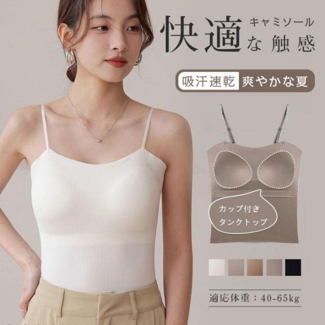 キャミソール【キャミソール カップ付き】 キャミソール カップ入 レディース シームレス ノンワイヤー ブラキャミ パッド付 オールシーズン アンダーフリー