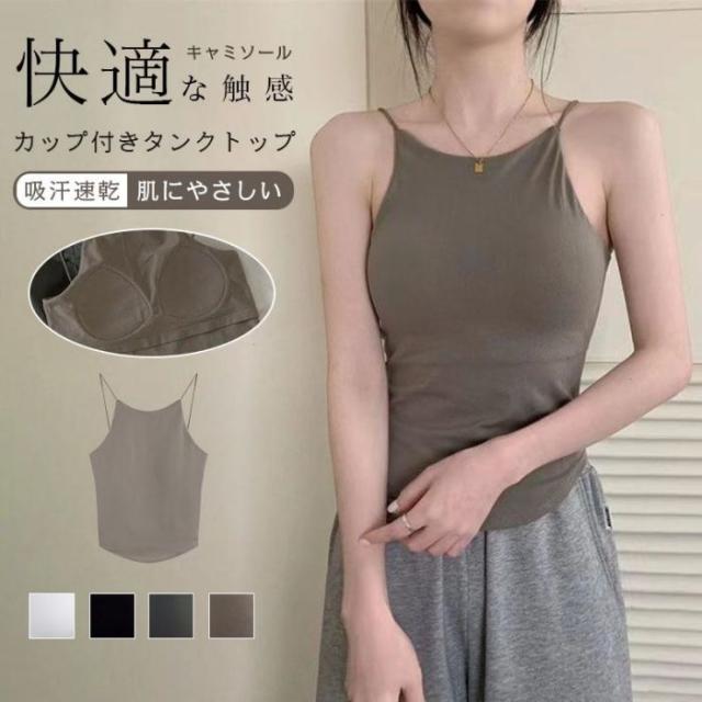 キャミソール【キャミソール カップ付き】袖なし タンクトップ 春 夏 秋 トップス 定番 インナー レディース キャミソール カップ付き 補正 下着 肌着 締めつけ