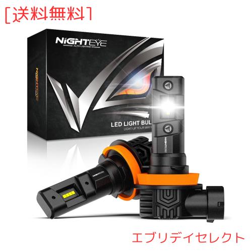 『純正バルブと同形状!』NIGHTEYE h11 ヘッドライト led h8 車検対応 ファンレス led ヘッドライト hi/lo 爆光 14000lm 20W*2 6500K ハ