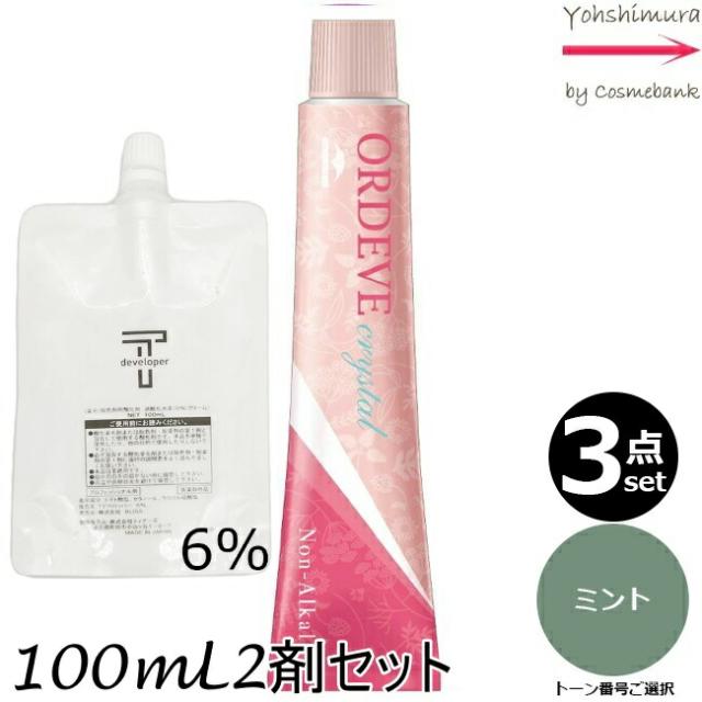 【3本セット・送料無料!】ミルボン オルディーブ クリスタル 20/n ミント 80g + クリームデベロッパー 2剤 6% 100mL セット ノンアルカリカラー|トーン番号選択|1剤+2剤|医薬部外品