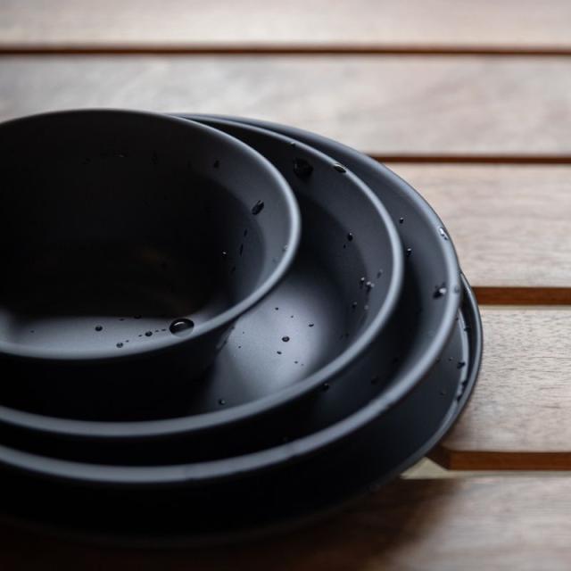 キャンピングムーン テーブルウェア キャンプ プレート ステンレス 食器 セット 8点入り 帆布ケース付き 黒ギア BKS395-2S