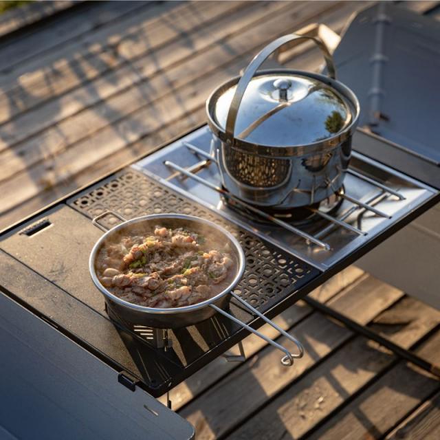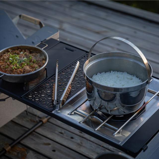 | 用途 | ・グリルテーブル、ブリッジテーブルCK用センターボード、ブリッジテーブルでお使い頂けるレーザー天板 ※ IGT 0.5ユニット分になりますので他のアイアングリルテーブル(IGT)製品のスペース埋めでもお使い頂けます。 ・フィールドラック2台の連結用としても ブリッジ的に使うことで延長テーブルにもなります |