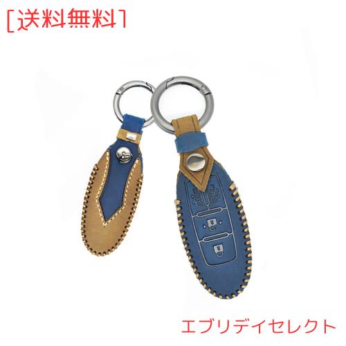 [ontto] 日産 キーケース キーカバー キーホルダー セレナ C27 C26 C25 エルグランド E52 E51 両側スライドドア 車用 レザー 青