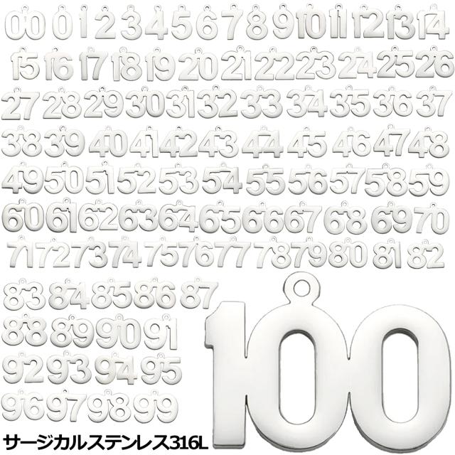 サージカルステンレス316L製の00から100までの数字をデザインしたペンダントトップやピアスやネックレス、チョーカーやブレスレット、アンクレットやバングルに最適の番号パーツ。