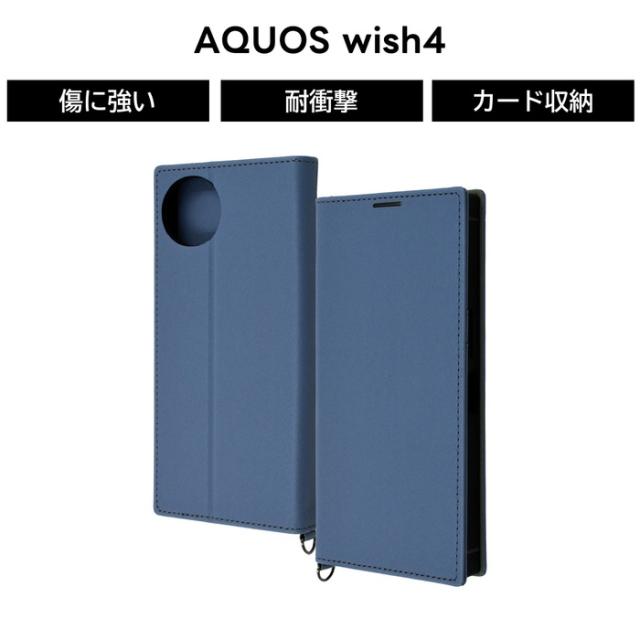 AQUOS wish4 ケース 手帳型 AQUOSwish4 SH-52E アクオスウィッシュ4 耐衝撃 手帳型ケース レザー ブルー ソフト ハード スマホケース カード収納