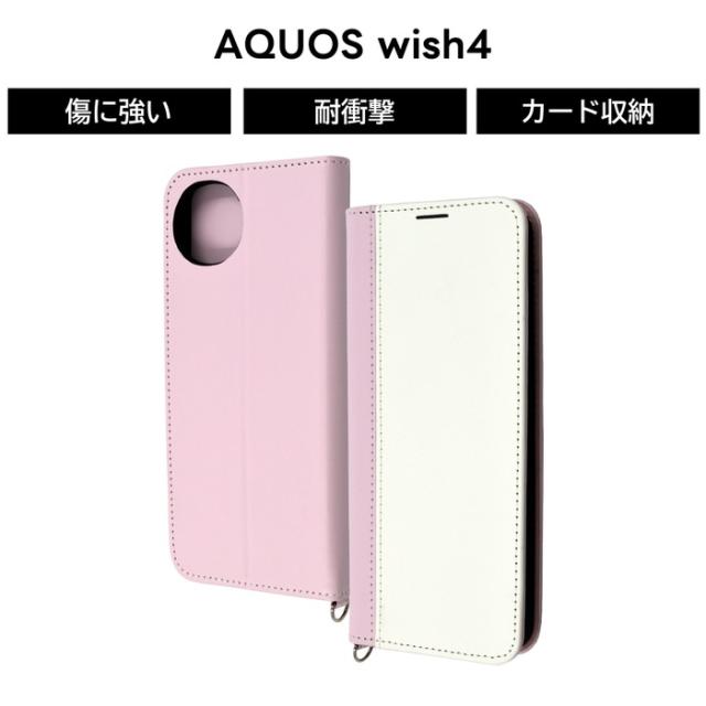 AQUOS wish4 ケース 手帳型 耐衝撃 AQUOSwish4 SH-52E アクオスウィッシュ4 手帳型ケース ピンク ホワイト ソフト ハード スマホケース カード収納