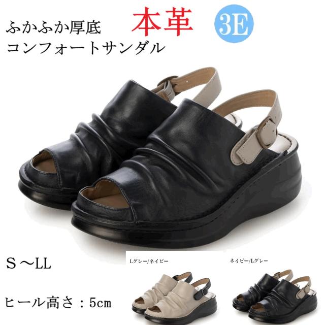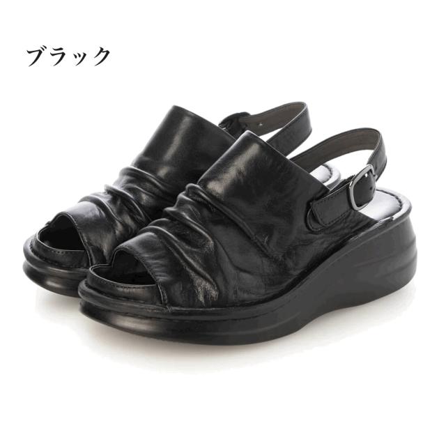 本革 牛革 レザーサンダル コンフォートサンダル 柔らかい 厚底 ふかふか カジュアルサンダル バックバンド 安定感 履きやすい 歩きやすい 疲れにくい 幅広 外反母趾